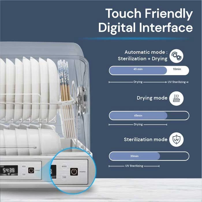 Dish Dryer ini tidak hanya digunakan untuk peralatan makan orang dewasa saja. Namun bisa juga mengeringkan dan mensterilkan peralatan bayi Anda. Dengan kapasitas yang besar, tentu bisa menampung peralatan makan sesuai dengan kebutuhan Anda.