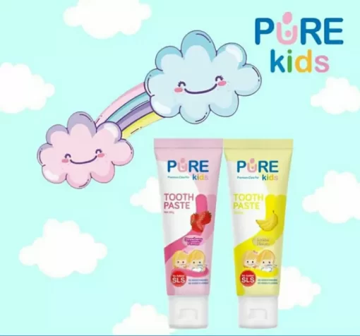 Purekids Toothpaste pasta gigi anak dengan formulasi tanpa tambahan SLS (Sodium Loutyl Sulfote) dan tanpa tambahan flouride. Purekids Toothpate membersihkan dan menjadikan gigi si kecil tetap sehat, kuat dan membantu merawat gigi agar tidak berlubang. Pure Kids Toothpaste tanpa paraben dan tanpa pewarna sehingga pastanya tidak berwarna.